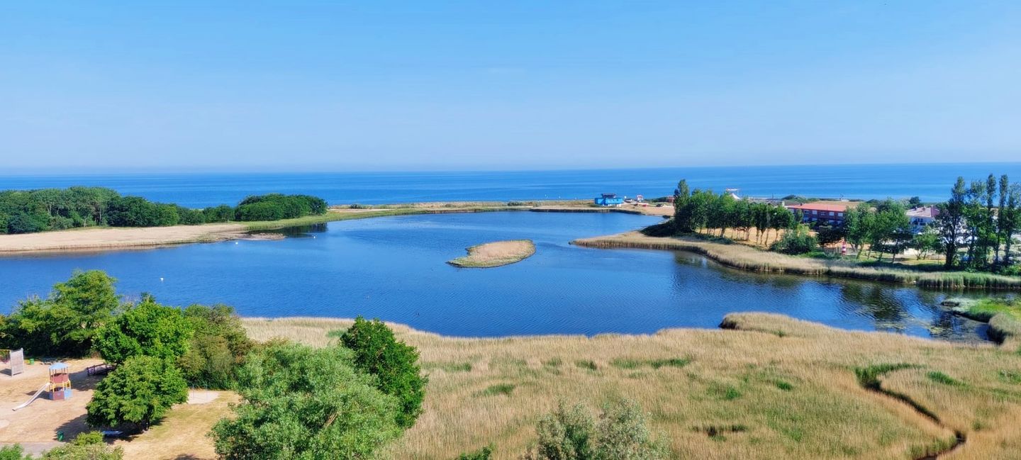 Der Ostseestrand ist nur etwa 400 Meter entfernt und bequem zu Fuß erreichbar. Schon nach wenigen Minuten stehen Sie am Wasser, spüren den Sand unter den Füßen und hören das Rauschen der Wellen. Auch der nahegelegene Binnensee liegt nur rund 300 Meter entfernt und bietet eine schöne Kulisse für Spaziergänge oder ruhige Momente in der Natur.