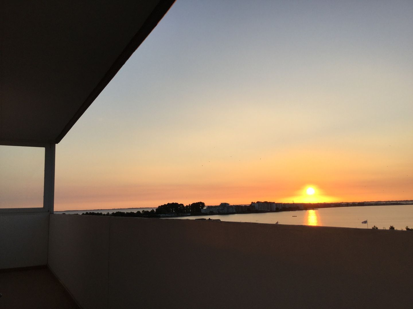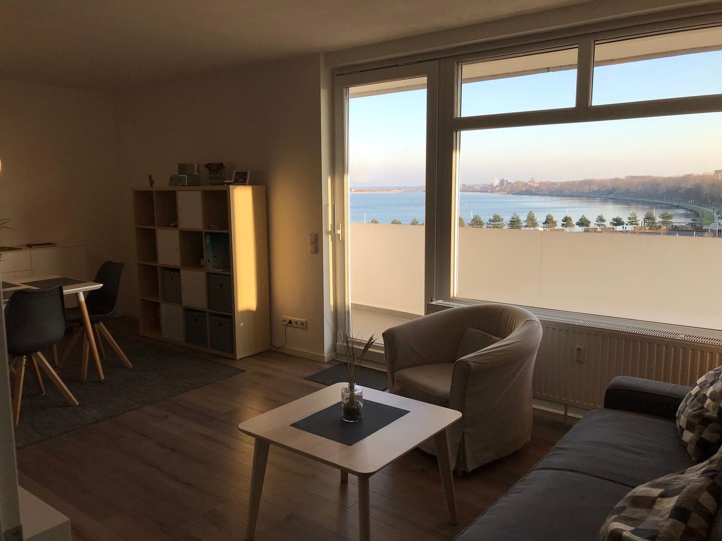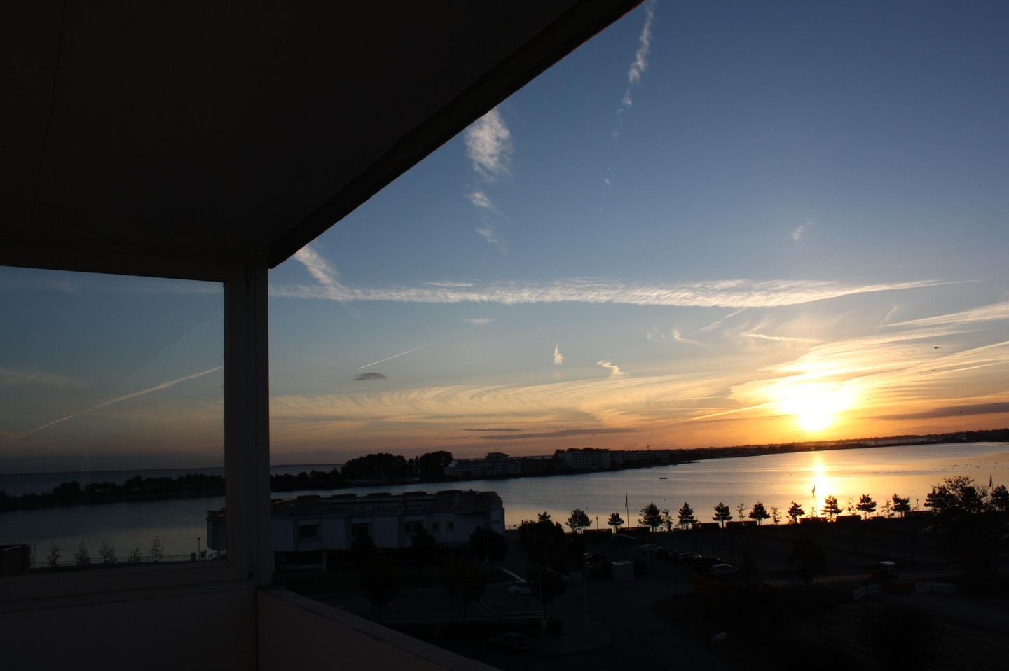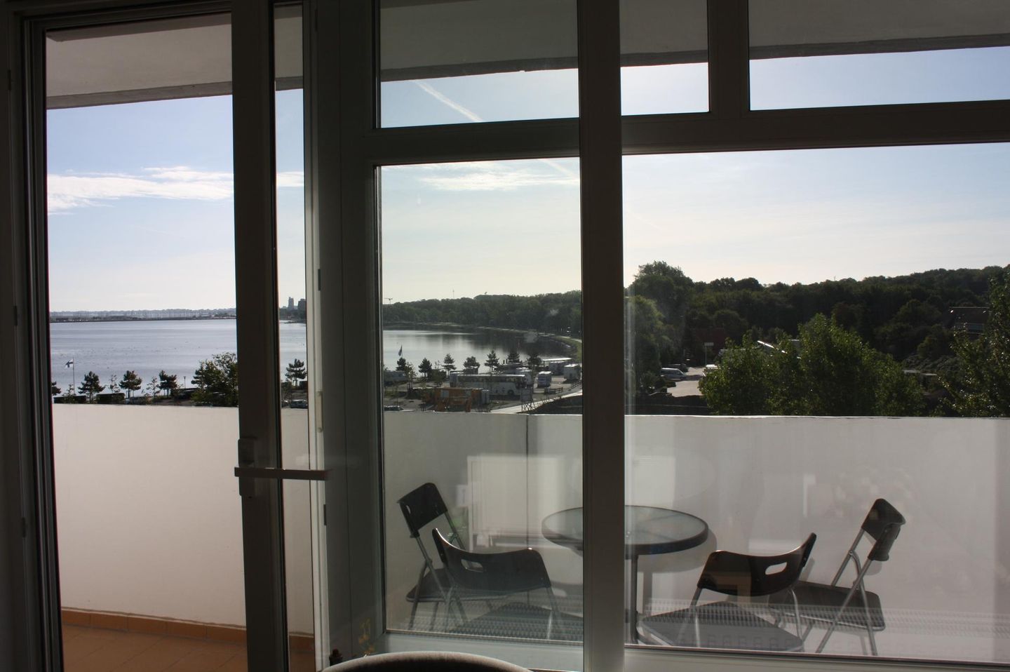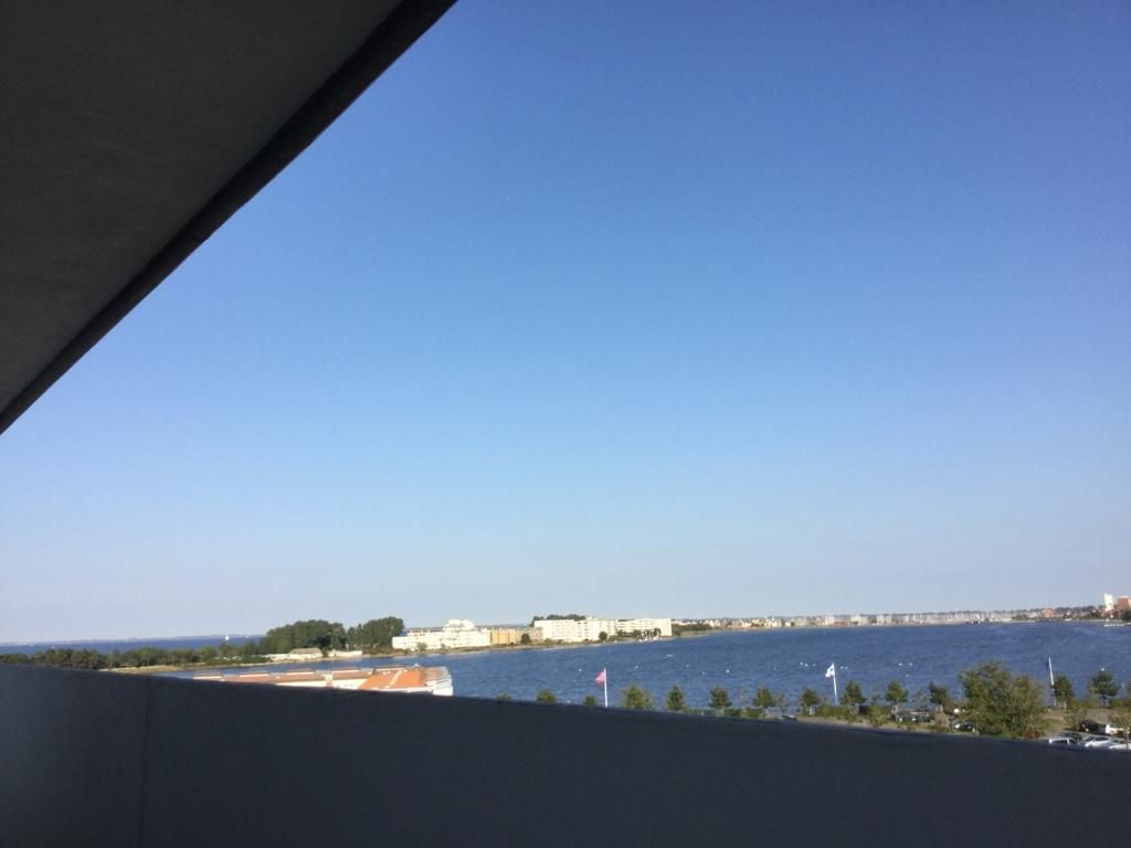 Die möblierte, überdachte Balkonfläche mit außergewöhnlich tollem Ausblick über den Binnensee bis hin zur Ostsee setzt besondere wohnliche Akzente und lädt dazu ein, das maritime Ambiente in ruhiger Atmosphäre zu genießen.