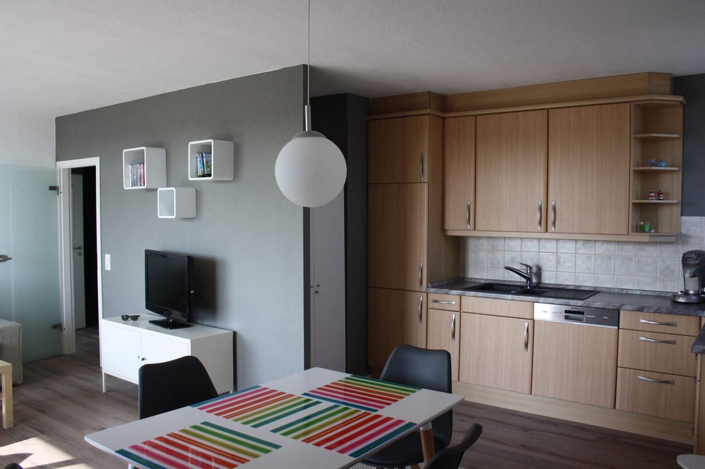 Die moderne Kochnische ist mit Backofen, Ceranherd, Kühlschrank mit Gefrierfach, Geschirrspüler, Kaffeemaschine, Wasserkocher, Toaster, Eierkocher und umfassendem Küchenzubehör sehr gut ausgestattet.