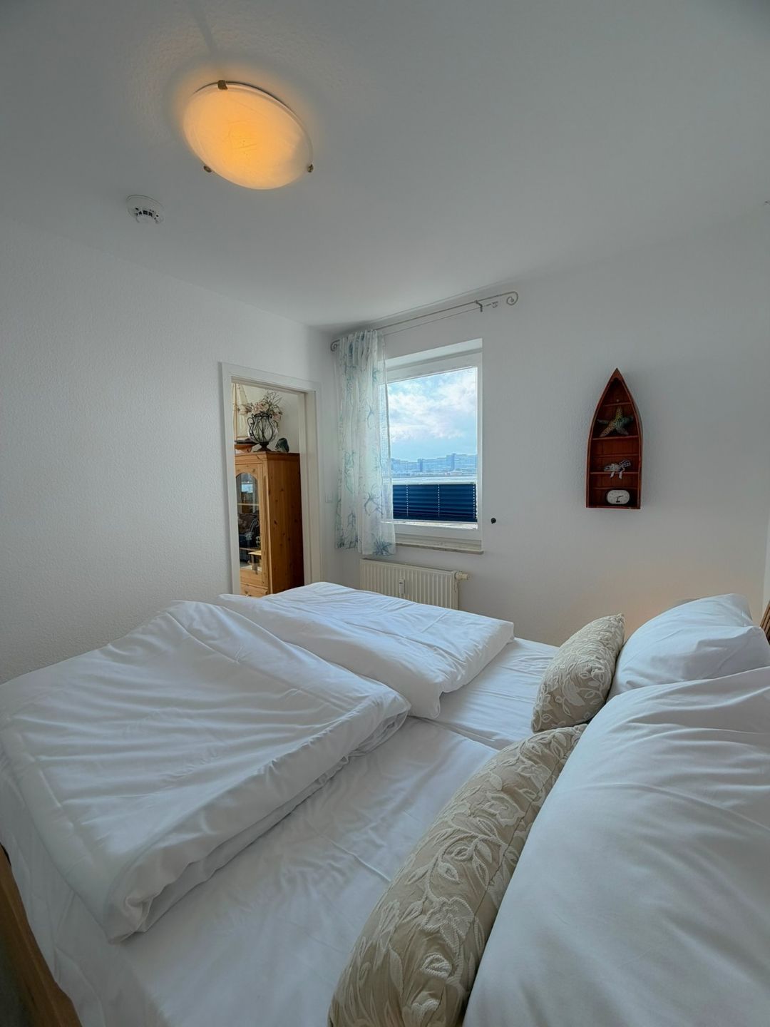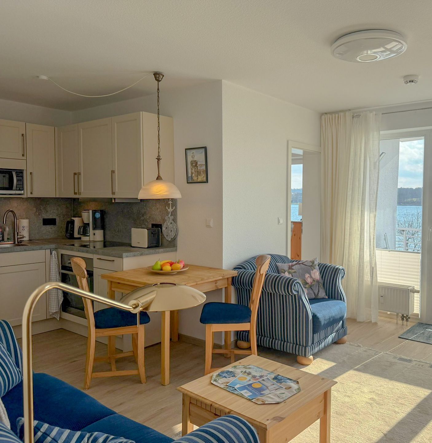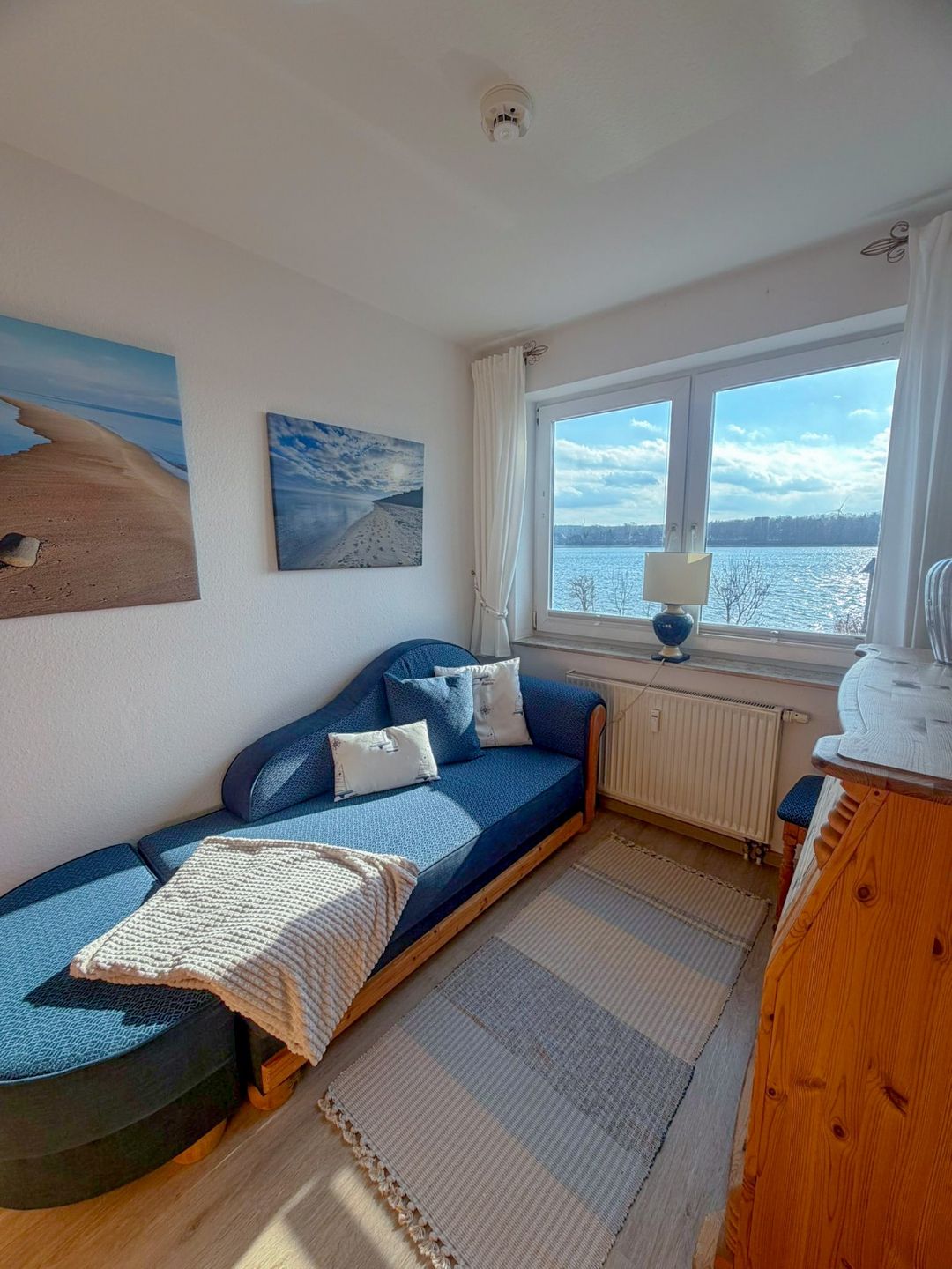 Die gemütlich eingerichtete Unterkunft im Hochparterre bietet 3 Zimmer auf 47 qm für 2 Gäste und begeistert durch den herrlichen Ausblick über den Heiligenhafener Binnensee und die Nähe zum Badestrand.
