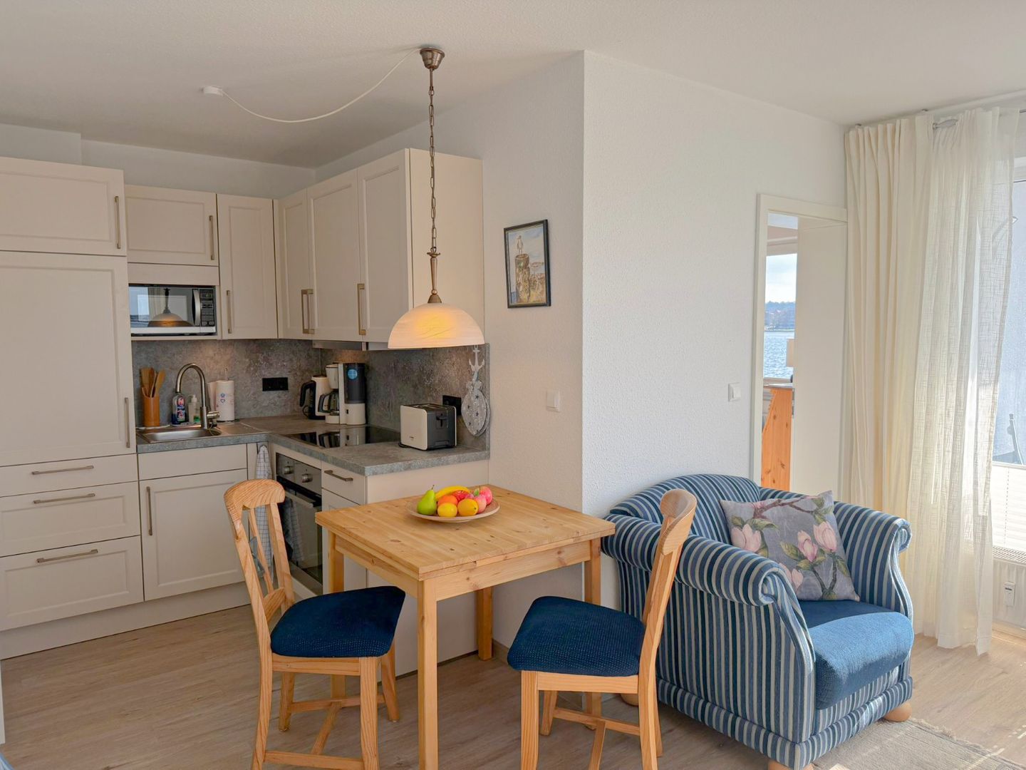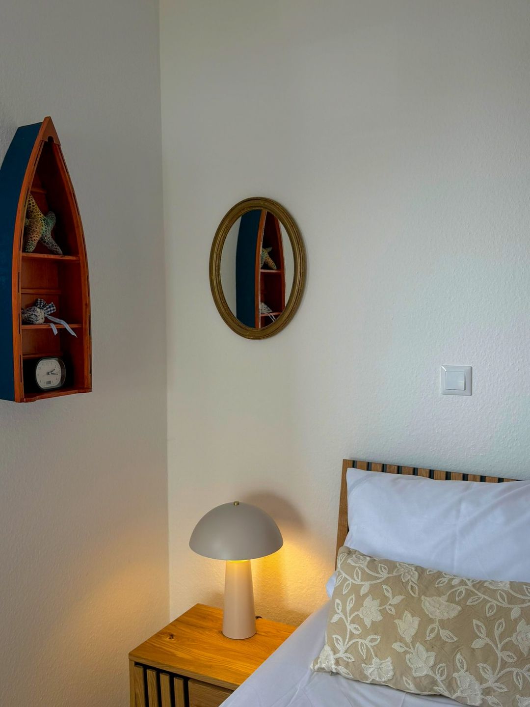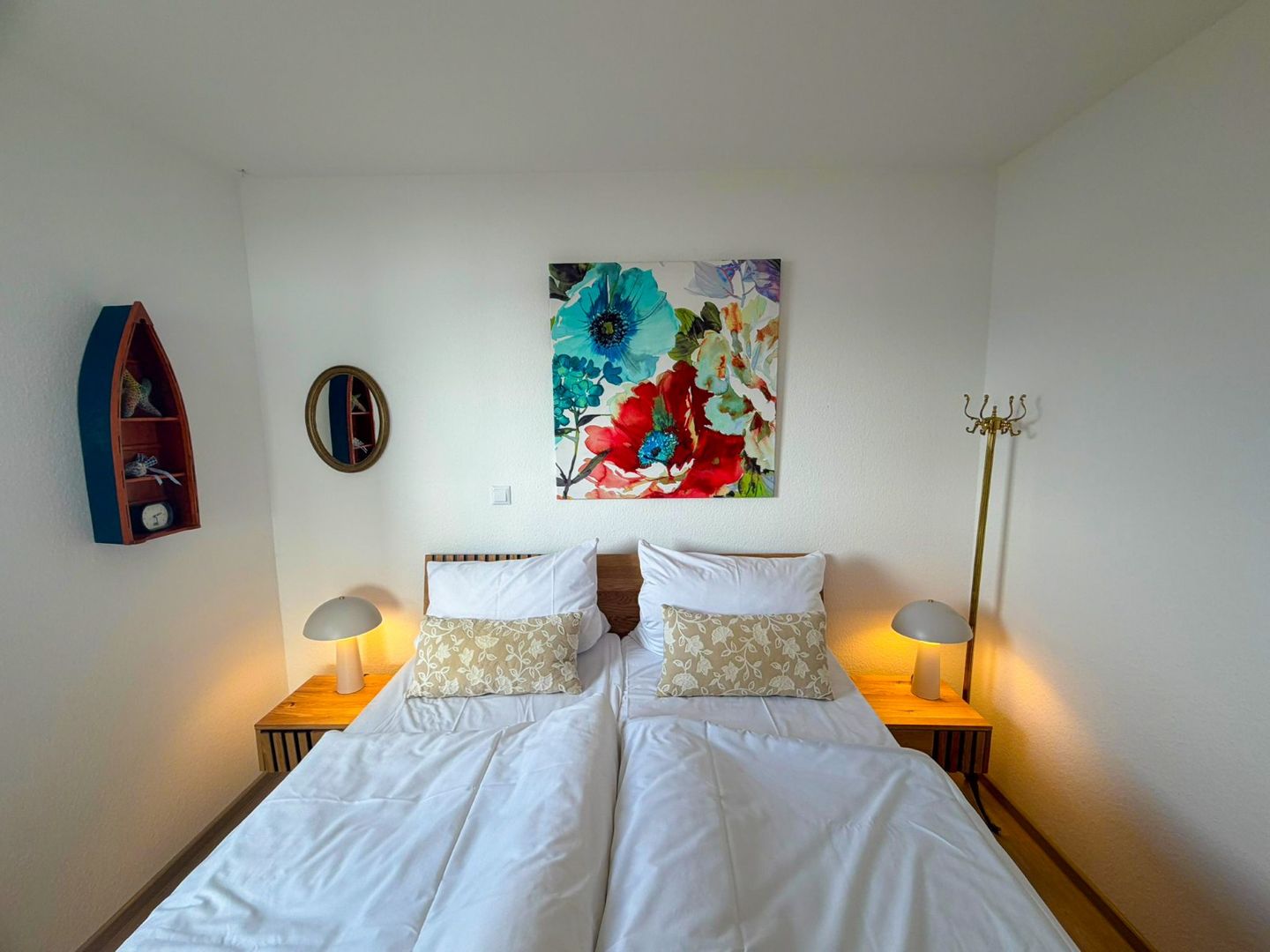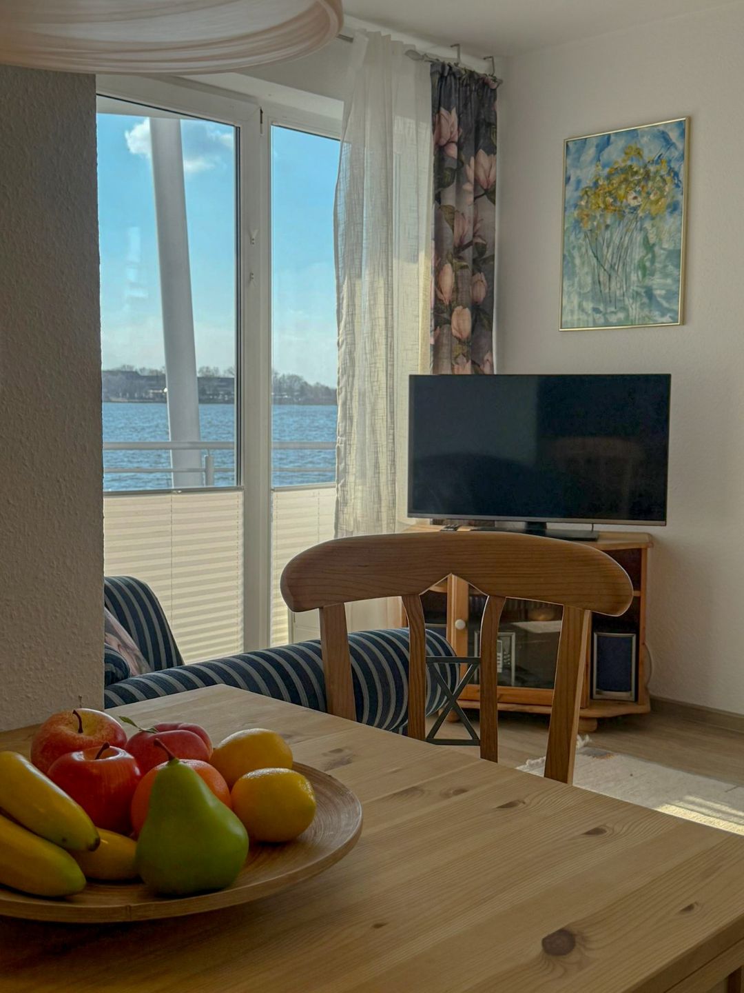 Die gemütlich eingerichtete Unterkunft im Hochparterre bietet 3 Zimmer auf 47 qm für 2 Gäste und begeistert durch den herrlichen Ausblick über den Heiligenhafener Binnensee und die Nähe zum Badestrand.
