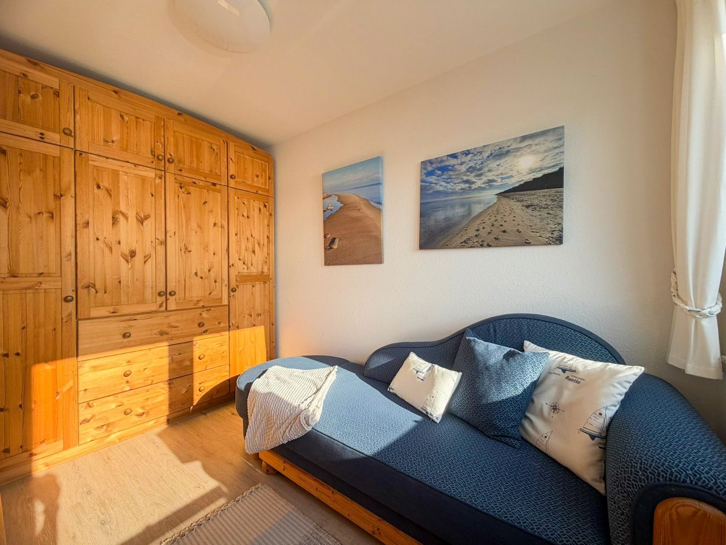 Das 3. Zimmer ist mit großem Kleiderschrank mit jeder Menge Platz für Ihre Urlaubsgarderobe ausgestattet. Ein Sekretär und eine Recamiere stehen Ihnen in dem gemütlichen Zimmer mit tollem Seeblick ebenfalls zur Verfügung.